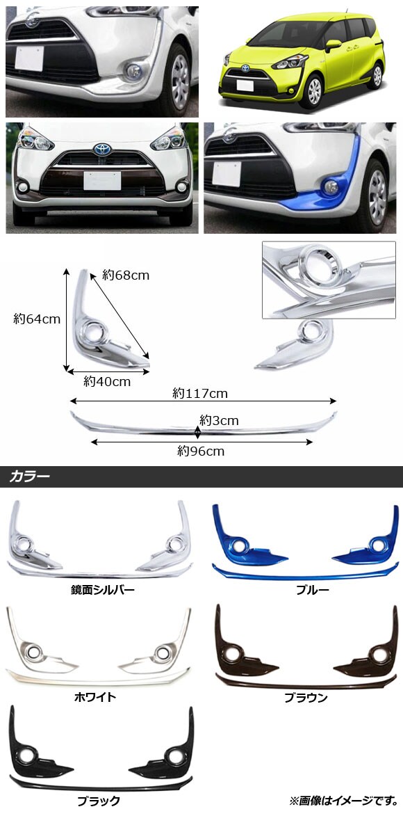 フロントリップ&フォグカバー トヨタ シエンタ 170系 前期 2015年07月~2018年08月 鏡面シルバー ABS樹脂製 入数:1セット(3個) AP-XT292-KSI