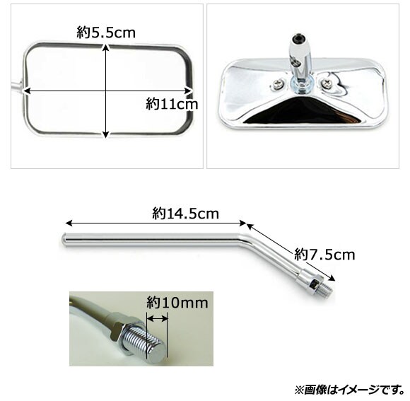 ミラー クローム 汎用 片側 左右兼用 スクエア形 ショートステー 10mm AP-2G099 2輪