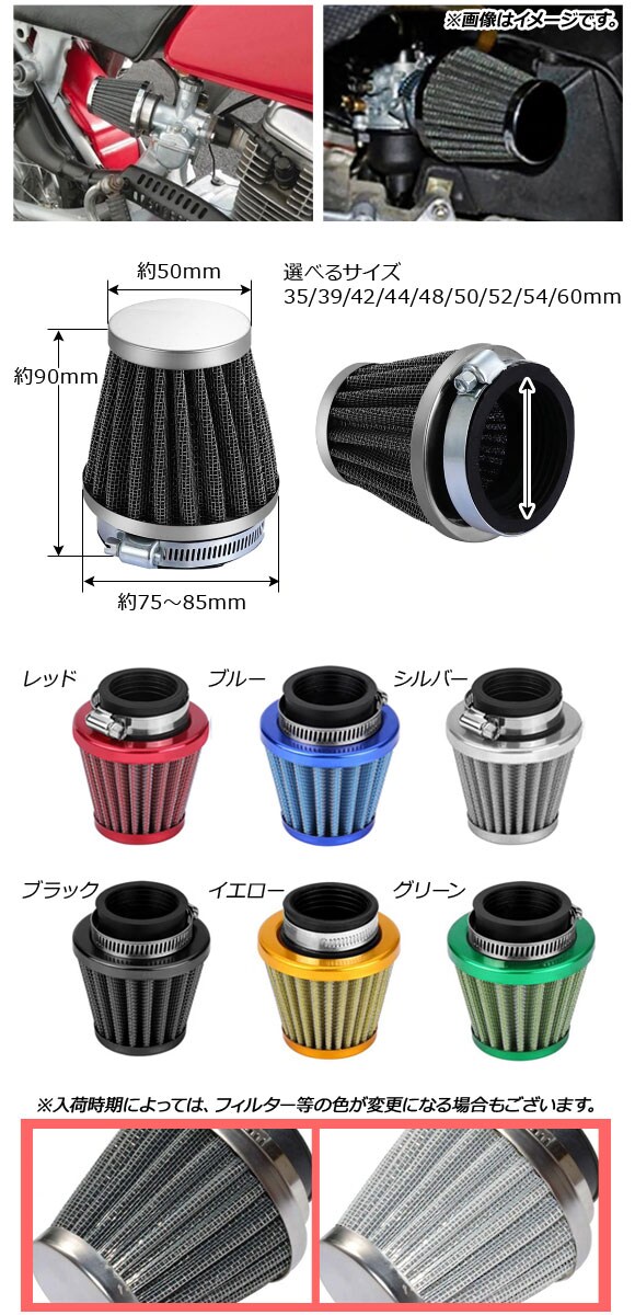 エアクリーナー 39mm キノコ形 ストレート 汎用 選べる6カラー AP-2A015-39MM 2輪