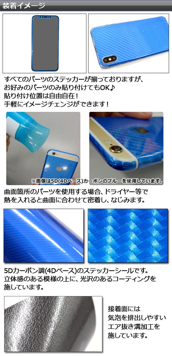 スキンシール 5Dカーボン調(4Dベース) iPhone用 背面タイプ2 保護やキズ隠しに! 選べる20カラー iPhoneX,XRなど AP-5FR891