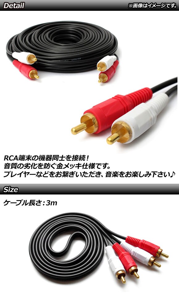 サイズ/タイプ:3m 2RCA(オス)-2RCA(オス)