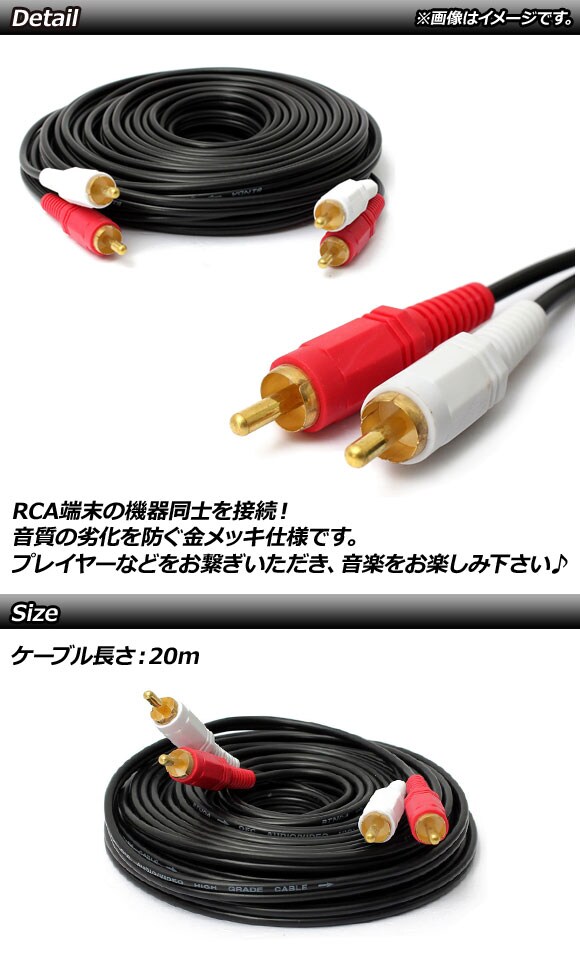 サイズ/タイプ:20m 2RCA(オス)-2RCA(オス)
