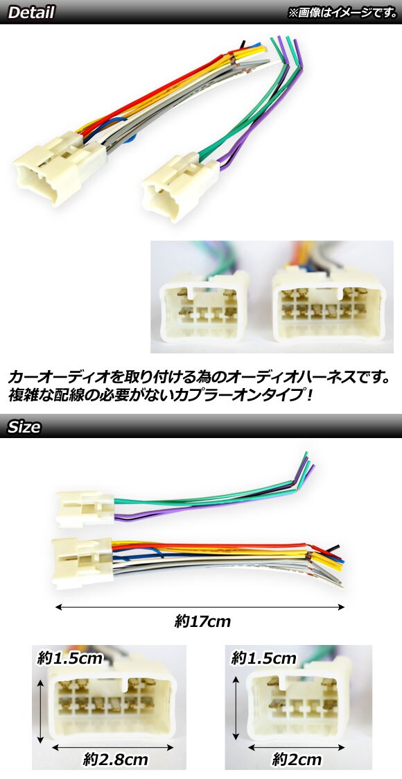 オーディオハーネス ステレオハーネス ハーネス ワイヤーハーネス オーディオカプラー カプラー カプラ オーディオプラグ プラグ オーディオコネクター ステレオコネクター コネクター コネクタ ケーブル オーディオアダプタ アダプタ アダプター オーディオ カーオーディオ ステレオ カーステレオ CDデッキ デッキ CD MD プレーヤー プレイヤー カーナビ ナビ 換装 交換 載せ替え 変換 接続 配線 パーツ 12pin 6pin