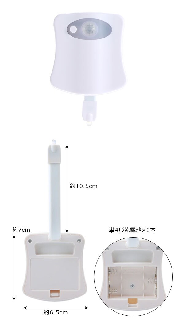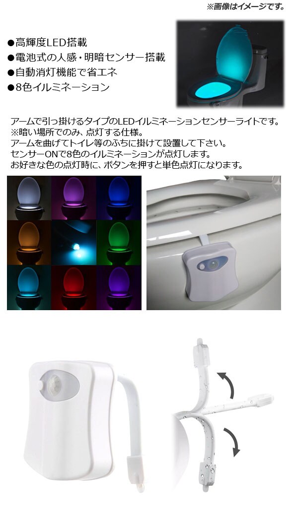 サイズ/タイプ:トイレライト 人感・明暗センサー 8カラー イルミネーション