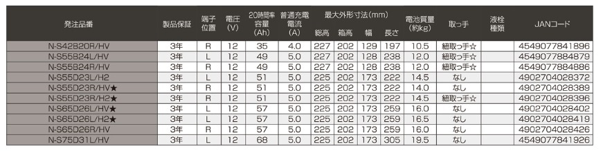 バッテリーの適合は年式・型式によって異なります。必ず実際に装着されているバッテリー品番をご確認いただき