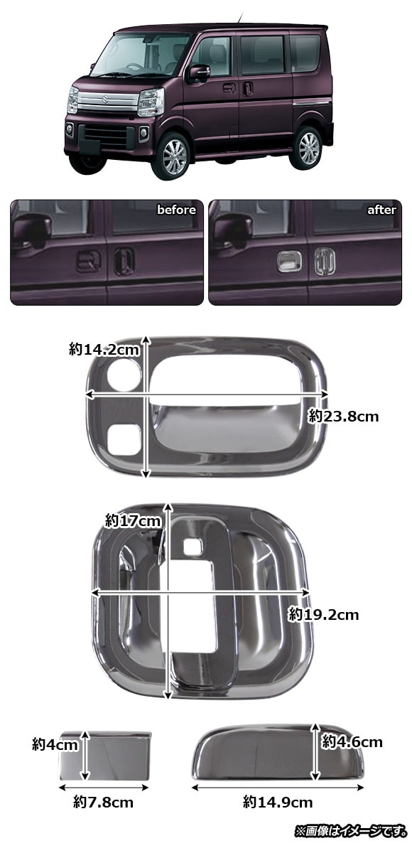 ドアハンドルインナーカバー ニッサン NV100クリッパー/NV100クリッパーリオ DR17V/DR17W 2015年03月~ 鏡面シルバー ABS製 入数:1セット(8個)