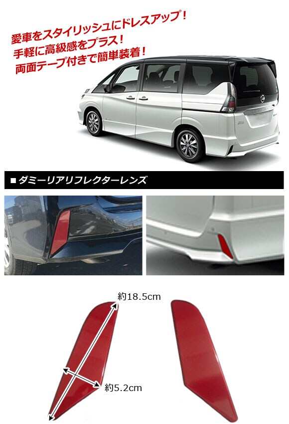 ダミーリアリフレクターレンズ 日産 セレナ C27系 ハイウェイスター/ハイウェイスターG 2016年08月~ レッド 貼り付けタイプ 入数:1セット(2個) AP-RF038