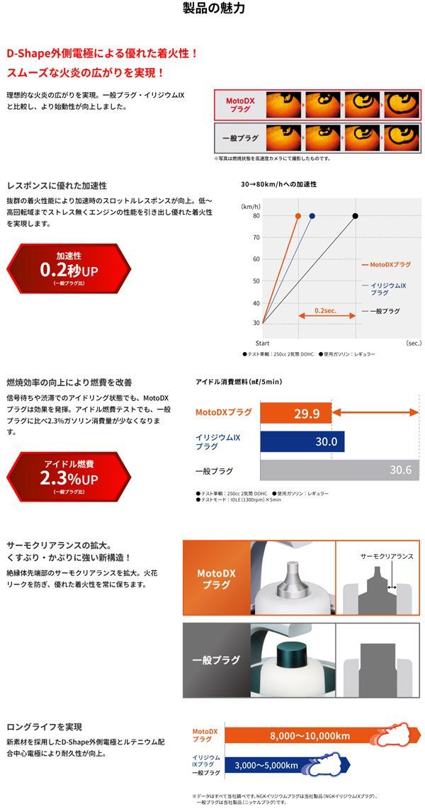 エヌジーケー 日本特殊陶業 Niterra 点火プラグ 点火 プラグ スパーク 着火 燃焼 熱価 spark plugs 高性能プラグ 交換 補修 消耗部品 ノーマルエンジン用 MotoDXプラグ Moto DX モトDX イリジウムプラグ バイク用