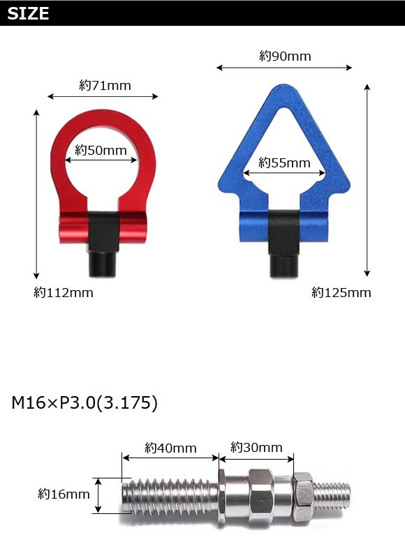 けん引フック 牽引 けん引 フック トーイングフック トーイング トーフック レーシングフック レーシング レスキューフック レスキュー サーキットフック サーキット フロントフック フロント リアフック リング リア リヤ M16 P3 円形 円型 円 まる 丸形 丸型 汎用 トレーラー 欧州 ヨーロッパ 欧州車 脱着式 脱着 可倒式 アルミニウム アルミ 外装 外装パーツ パーツ エクステリア ドレスアップ カスタム カスタマイズ 装飾 装飾パーツ アクセサリー アクセサリ