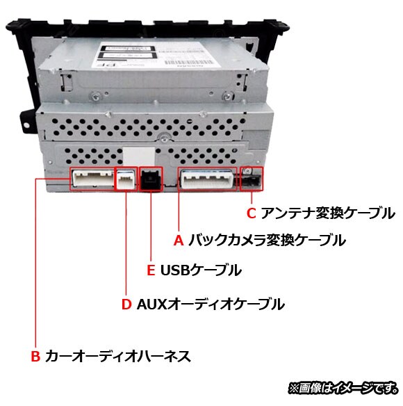 バックカメラ変換ケーブル、オーディオハーネス、アンテナ変換ケーブル、AUXケーブル、USBケーブルのセットです。