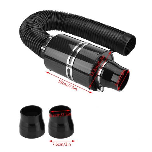 76mm ユニバーサル カーボンファイバーハイフローコールドエアフィルターシステム インテーク 誘導パイプホースキット キット AL-DD-1114 AL