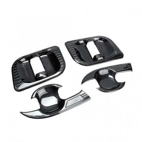 4ピース/セットドアハンドル カーボン ファイバー ボウルカップ カバー 空洞トリムフィット トヨタ ハイエース 2019 ABS スタイルアクセサリー AL-DD-1817 AL