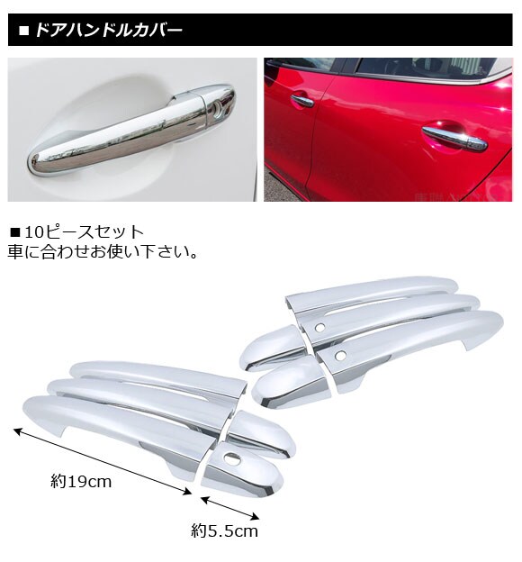 ドアハンドルカバー マツダ デミオ DJ系 DJ3,DJ5 2WD 2014年09月~ 鏡面シルバー ABS製 AP-XT350 入数:1セット(10個)