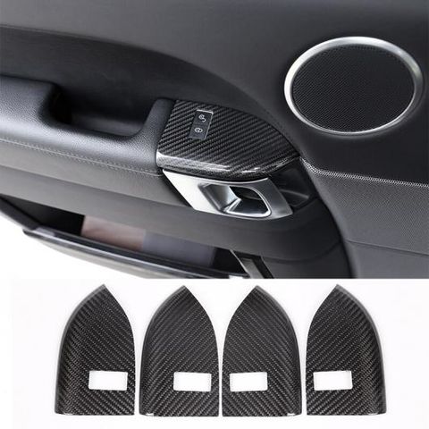 4個 カーボンファイバー チャイルド ロックボタン カバー ティム ランドローバーレンジローバースポーツ RR スポーツ 2014-2019 AL-DD-4822 AL