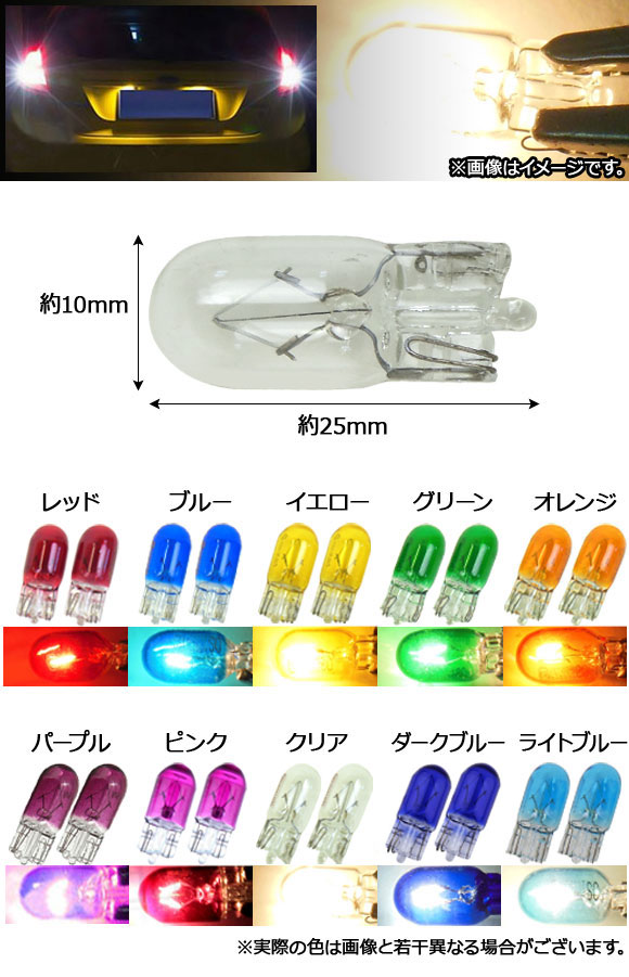 ハロゲンバルブ T10 シングル球 24V 5W ナンバー灯やポジションランプにおすすめ! 選べる10カラー 入数:2個 AP-LL028