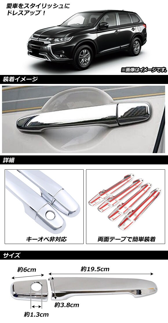 ドアハンドルカバー ミツビシ アウトランダー GF7W/GF8W MC後 2015年06月~ 鏡面シルバー キーオペ非対応 ABS樹脂製 AP-XT383 入数:1セット(8個)