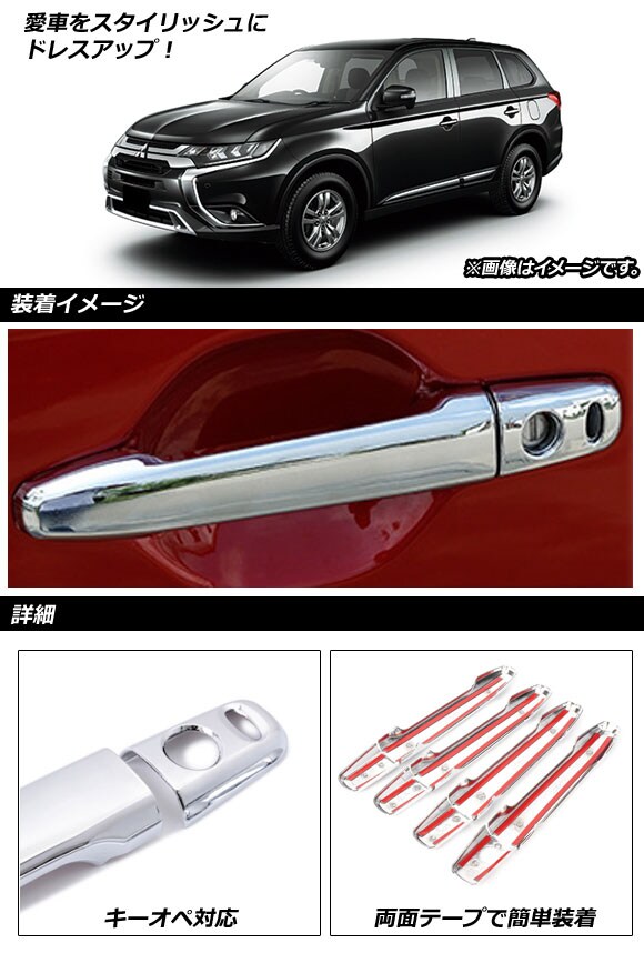 ドアハンドルカバー ミツビシ アウトランダー GF7W/GF8W MC後 2015年06月~ 鏡面シルバー キーオペ対応 ABS樹脂製 AP-XT384 入数:1セット(8個)