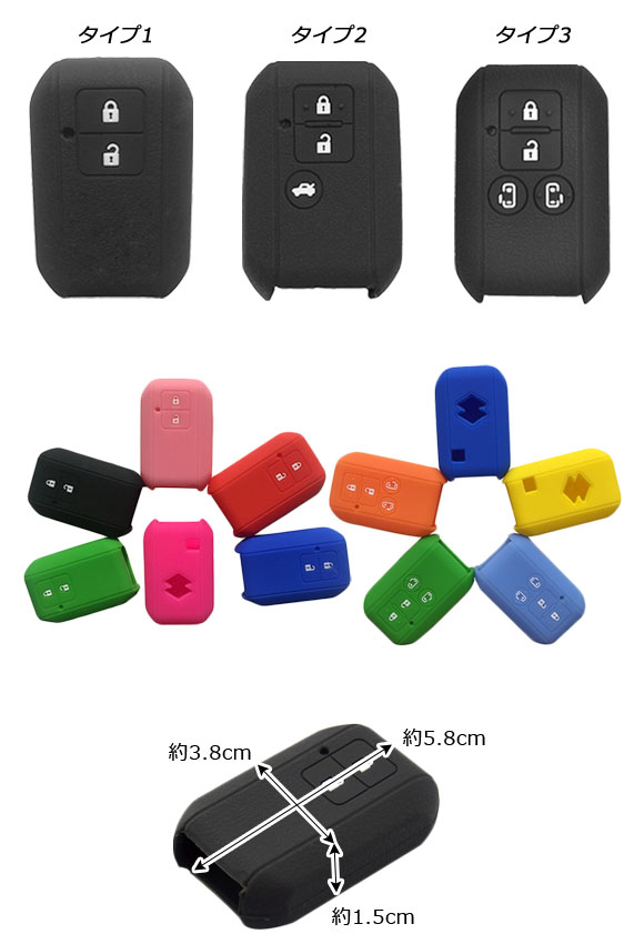 シリコンキーカバー スズキ汎用 愛車のキーを保護しながらドレスアップ! 選べる18カラー 選べる3タイプ AP-AS244