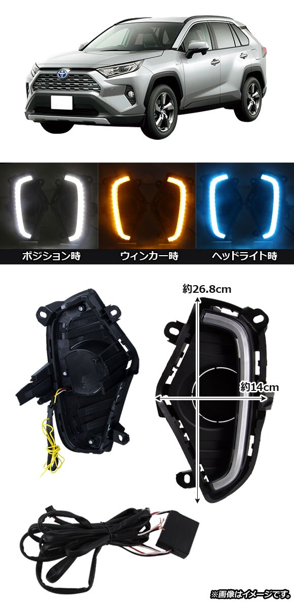LEDデイライト トヨタ RAV4 50系 G Z package/G/X/HYBRID G/HYBRID X 2019年04月~ ホワイト アンバー ブルー 3色点灯 AP-LL165-3C 入数:1セット(左右)