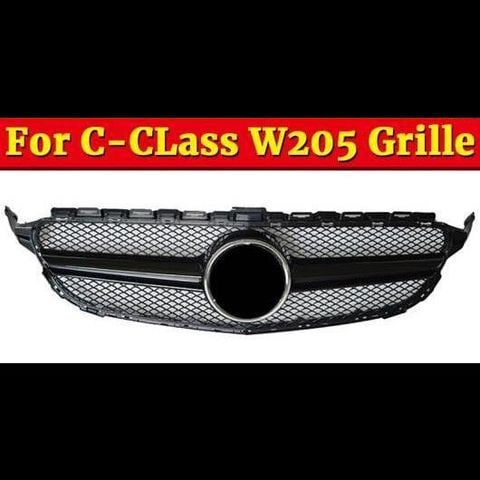 車用外装パーツ 適用: メルセデスベンツ W205 グリッド グリル 2 フィン ABS 光沢ブラック Cクラス C180 C200 C250 C63 フロント グリル 2015-2018 タイプ001 AL-EE-1080 AL