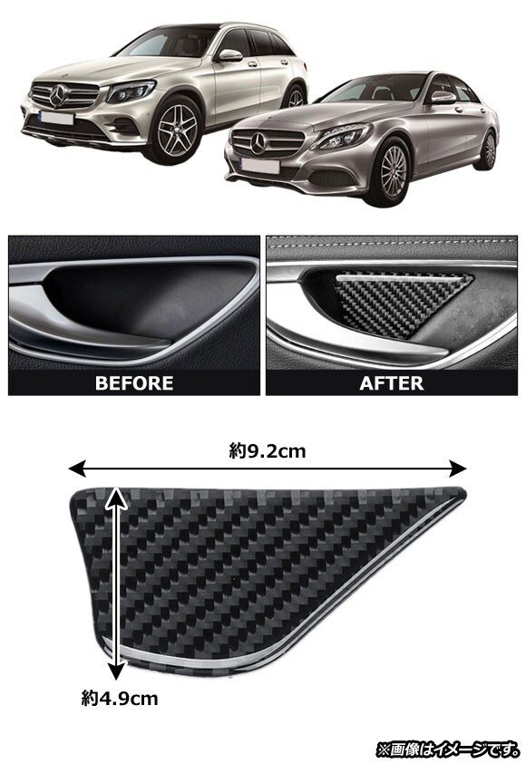 インナードアハンドルボウルカバー メルセデス・ベンツ Cクラス W205/C180/C200 2014年07月~ カーボンA ステッカー 入数:1セット(4個)