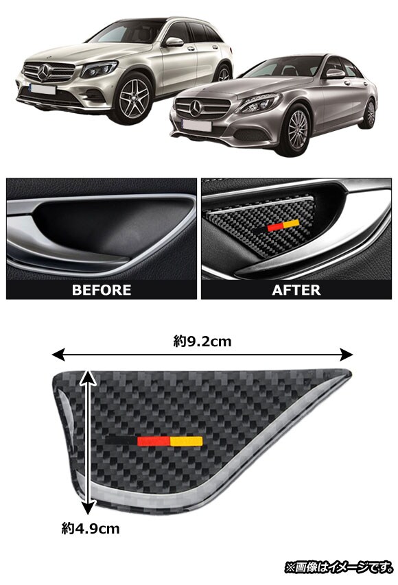 インナードアハンドルボウルカバー メルセデス・ベンツ Cクラス W205/C180/C200 2014年07月~ カーボンB ステッカー 入数:1セット(4個)