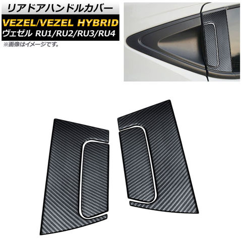 リアドアハンドルカバー ホンダ ヴェゼル RU1/2/3/4 2013年12月~ ブラックカーボン ステンレス製 コの字型+ドアノブ AP-XT426-BKC-A2B 入数:1セット(4個)