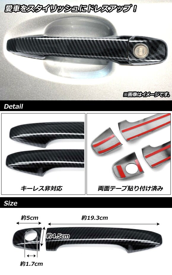 ドアハンドルカバー スバル WRX SIT/S4 2014年08月~ カーボン調 キーレスアクセス非対応 ABS樹脂製 入数:1セット(8個)