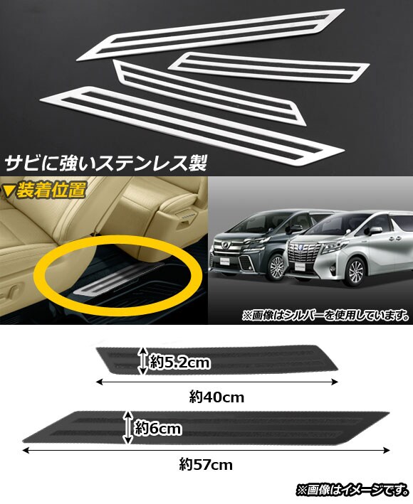 スカッフプレート トヨタ アルファード/ヴェルファイア 30系 2015年01月~ ブラック ステンレス製 ヘアライン仕上げ 入数:1セット(4個) AP-SG015-BK