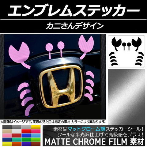 エンブレムステッカー マットクローム調 カニさんデザイン 選べる20カラー AP-MTCR041