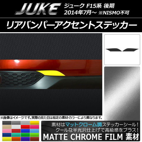 リアバンパーアクセントステッカー マットクローム調 ニッサン ジューク F15系 後期 NISMO不可 選べる20カラー 入数:1セット(2枚) AP-MTCR1806