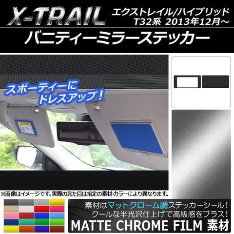 バニティーミラーステッカー マットクローム調 ニッサン エクストレイル/ハイブリッド T32系 2013年12月~ 選べる20カラー 入数:1セット(2枚) AP-MTCR338
