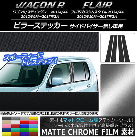 ピラーステッカー スズキ/マツダ ワゴンR/スティングレー,フレア/カスタムスタイル マットクローム調 選べる20カラー 入数:1セット(4枚) AP-MTCR972