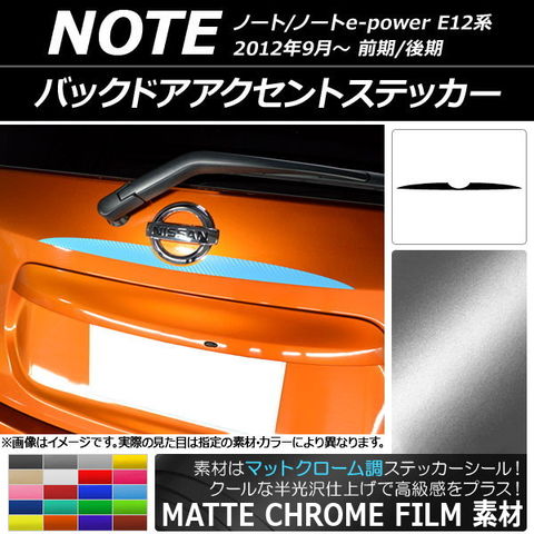 バックドアアクセントステッカー ニッサン ノート/ノートe-power E12系 前期/後期 2012年09月~ マットクローム調 選べる20カラー AP-MTCR3311