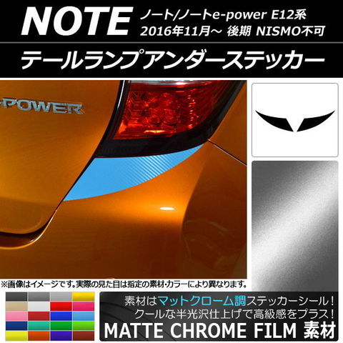 テールランプアンダーステッカー マットクローム調 ニッサン ノート/ノートe-power E12系 選べる20カラー 入数:1セット(2枚) AP-MTCR3322