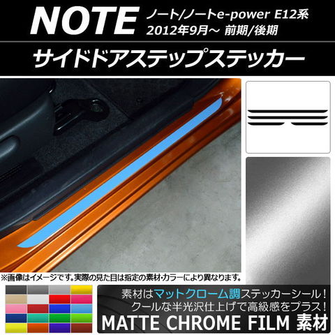 サイドドアステップステッカー ニッサン ノート/ノートe-power E12系 マットクローム調 選べる20カラー AP-MTCR3331 入数:1セット(4枚)