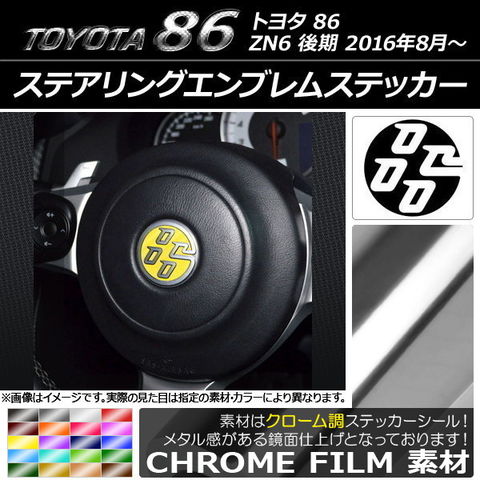 ステアリングエンブレムステッカー クローム調 トヨタ 86 ZN6 後期 2016年08月~ 選べる20カラー AP-CRM2305