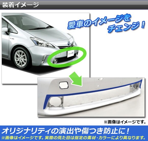 フロントバンパーラインステッカー トヨタ プリウスα ZVW40/ZVW41 前期 2011年05月~2014年11月 クローム調 選べる20カラー AP-CRM522