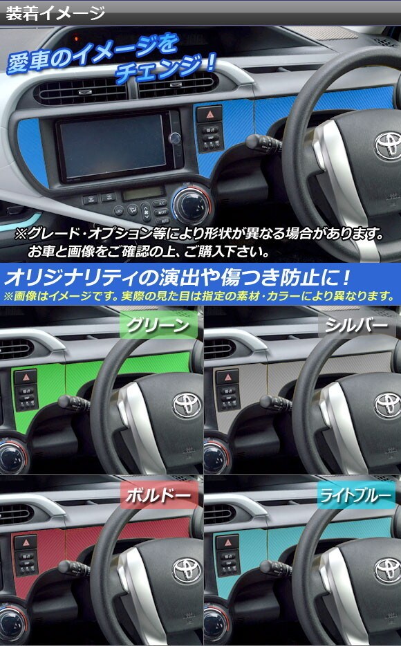 フロントパネルステッカー トヨタ アクア NHP10 前期 2011年12月~2014年11月 クローム調 選べる20カラー AP-CRM526 入数:1セット(3枚)