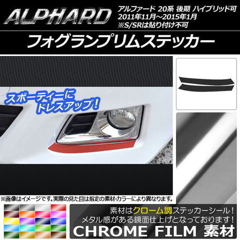 フォグランプリムステッカー クローム調 トヨタ アルファード 20系 後期 ハイブリッド可 選べる20カラー 入数:1セット(2枚) AP-CRM753