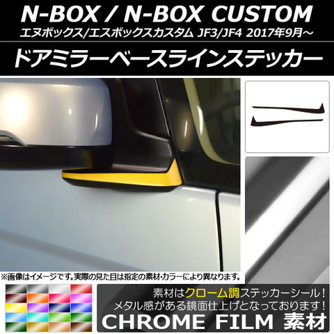 ドアミラーベースラインステッカー クローム調 ホンダ N-BOX/N-BOXカスタム JF3/JF4 2017年09月~ 選べる20カラー 入数:1セット(2枚) AP-CRM2847