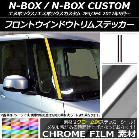 フロントウインドウトリムステッカー ホンダ N-BOX/N-BOXカスタム JF3/JF4 2017年09月~ クローム調 選べる20カラー AP-CRM2851 入数:1セット(2枚)