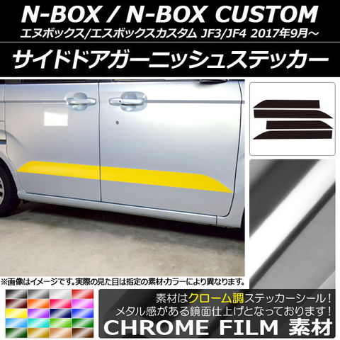 サイドドアガーニッシュステッカー ホンダ N-BOX/N-BOXカスタム JF3/JF4 2017年09月~ クローム調 選べる20カラー AP-CRM2855 入数:1セット(4枚)