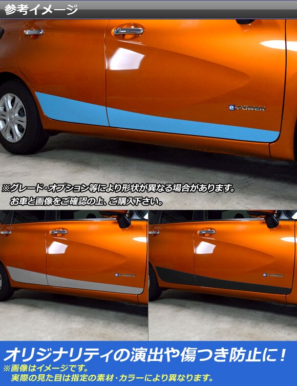 サイドドアステッカー ニッサン ノート/ノートe-power E12系 前期/後期 2012年09月~ クローム調 選べる20カラー AP-CRM3289 入数:1セット(4枚)