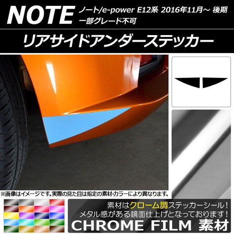 リアサイドアンダーステッカー クローム調 ニッサン ノート/ノートe-power E12系 後期 2016年11月~ 選べる20カラー 入数:1セット(2枚) AP-CRM3327