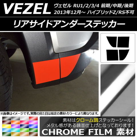 リアサイドアンダーステッカー クローム調 ホンダ ヴェゼル RU1/2/3/4 ハイブリッドZ/RS不可 2013年12月~ 選べる20カラー 入数:1セット(4枚) AP-CRM3463