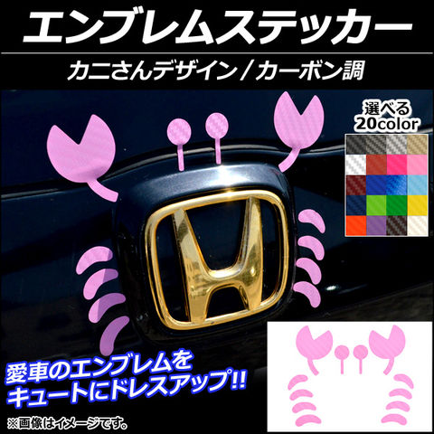 エンブレムステッカー カーボン調 カニさんデザイン 選べる20カラー AP-CF041
