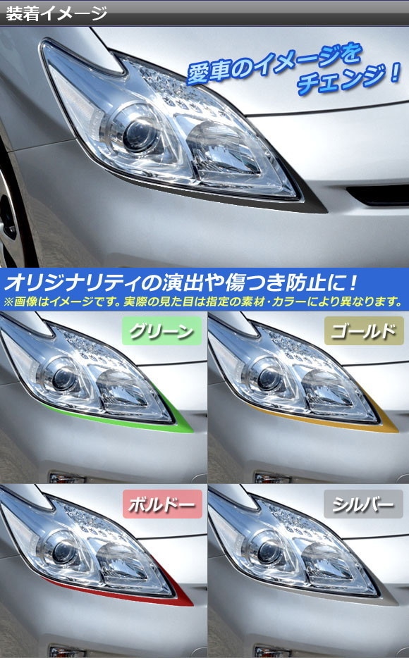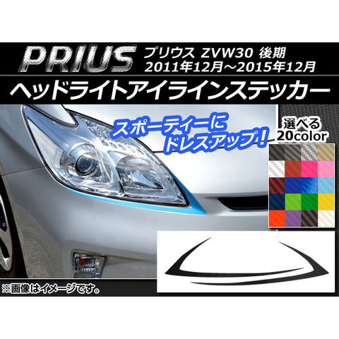 ヘッドライトアイラインステッカー カーボン調 トヨタ プリウス ZVW30 後期 2011年12月~2015年12月 選べる20カラー 入数:1セット(2枚) AP-CF158