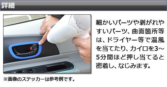 ※剥がれやすい場合やシワが有る場合は、貼り付け後にドライヤー等で熱を加え定着を促して下さい。