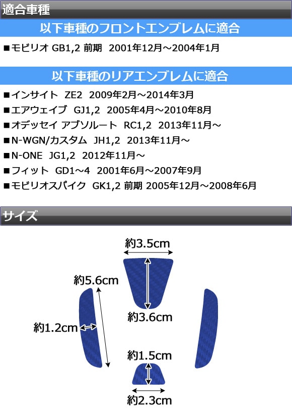 エンブレムステッカー カーボン調 ホンダ汎用タイプ1 フロント/リアどちらかに使用可能!(詳しくは画像でサイズをご確認ください) 選べる20カラー AP-CF898
